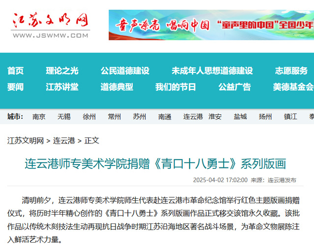 【江苏文明网】连云港师专美术学院捐赠《青口十八勇士》系列版画